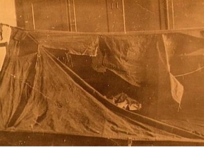 (당시 발견된 찢겨진 텐트, 이상하게도 안에서 밖으로 찢겨진 상태였다)